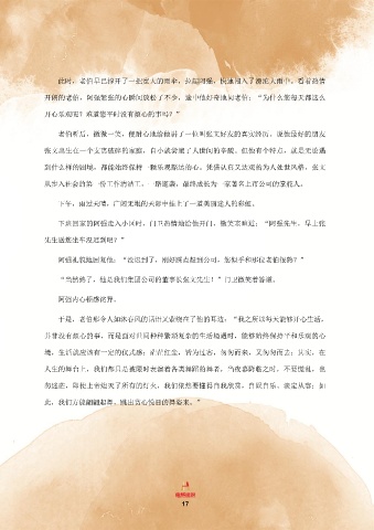 于是,老伯那令人如沐春風(fēng)的話語又縈繞在了他的耳邊:“我之所以每天能夠開心生活,