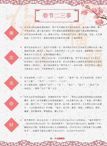 源 l 巫術(shù)儀式說、源于鬼節(jié)說等,其中最被普遍接受的說法是春節(jié)由虞舜時(shí)期興起。