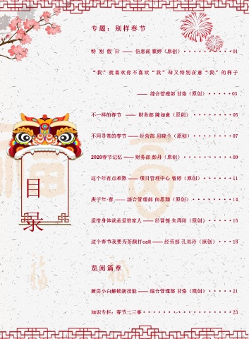 2020春節記憶 —— 財務部 彭丹(原創)··········09