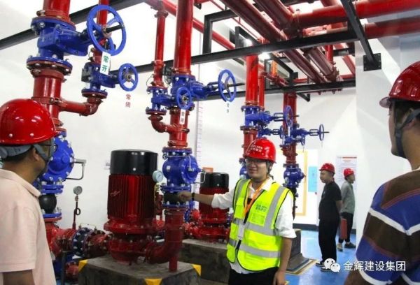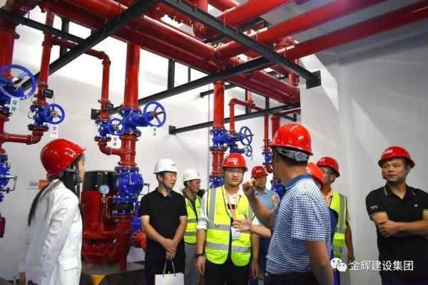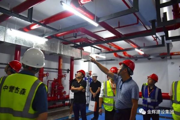 在消防工程實體樣板展示區,消防水泵房管道排列整齊,自動噴水消防系統整潔合規,各種防火封堵美觀實用,講解人員向觀摩嘉賓進行了詳細介紹。觀摩嘉賓對植基路項目在消防水泵房、風機房、消防管道支架等消防工藝上的標準化、規范化、先進化做法表示稱贊。
